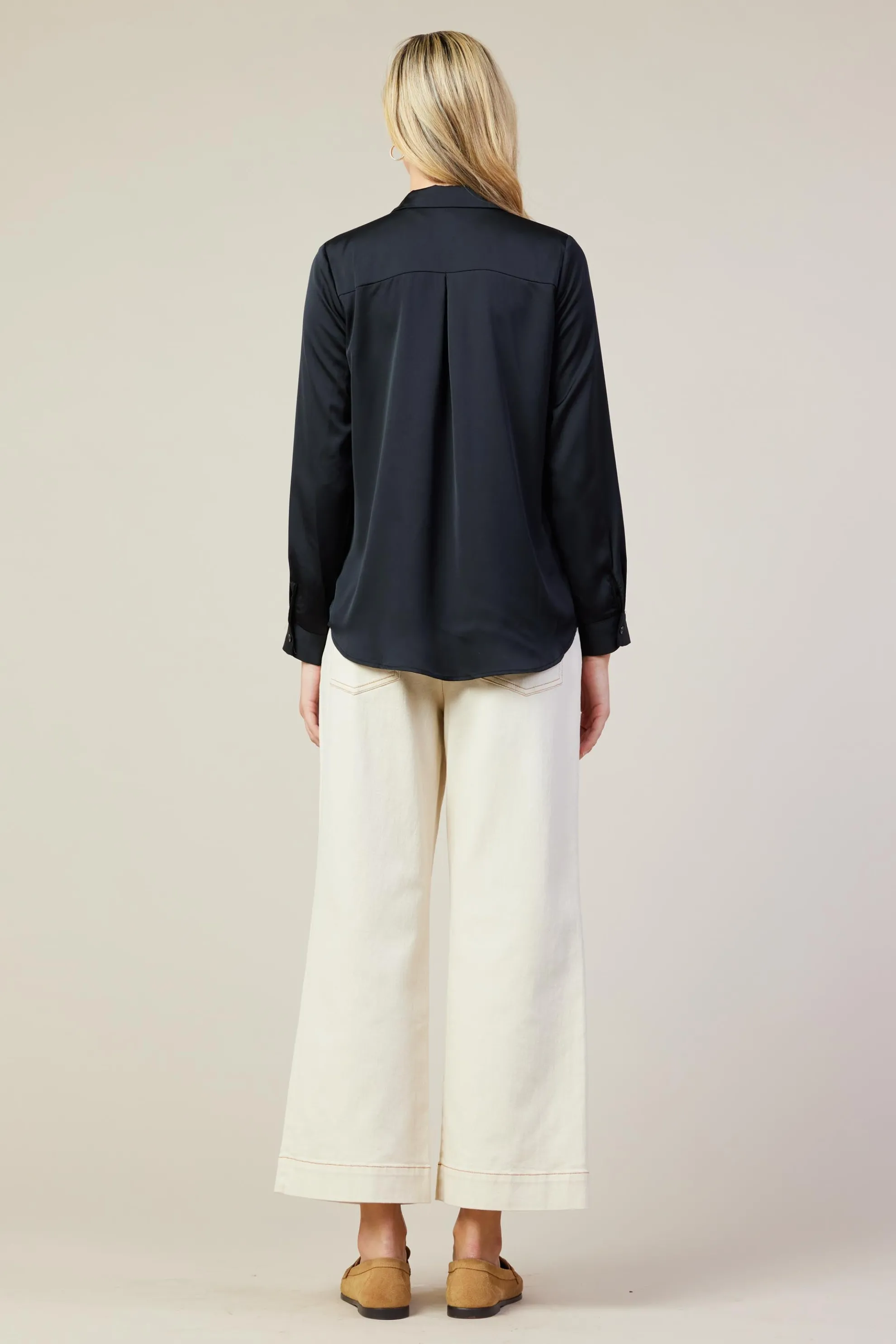 This button-front blouse has a relaxed fit in certified recycled materials. Pleated at the back to enhance the easy drape, the long-sleeve style is a refined piece that you can wear in any season.