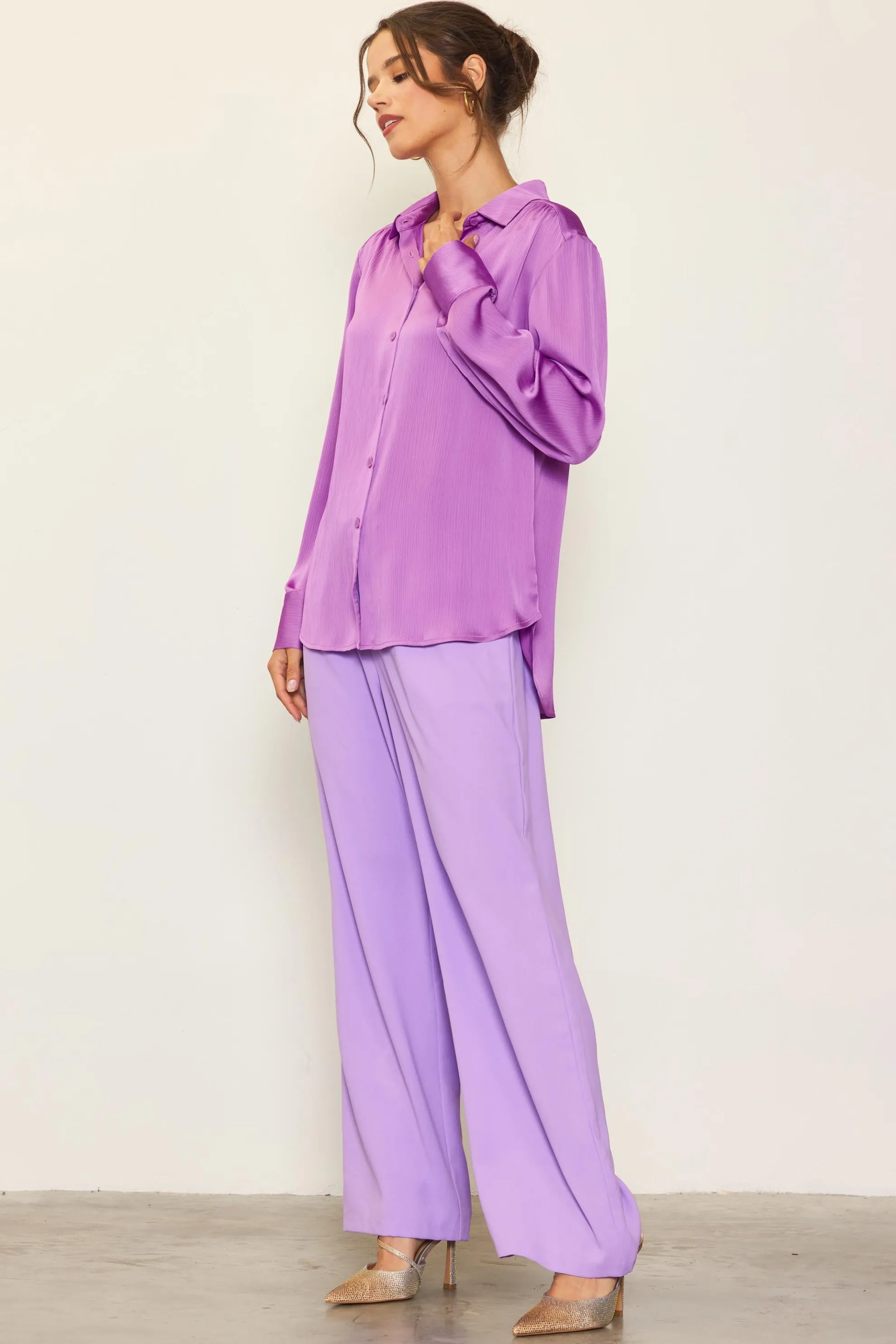 Recycled Crinkle Satin Buttondown