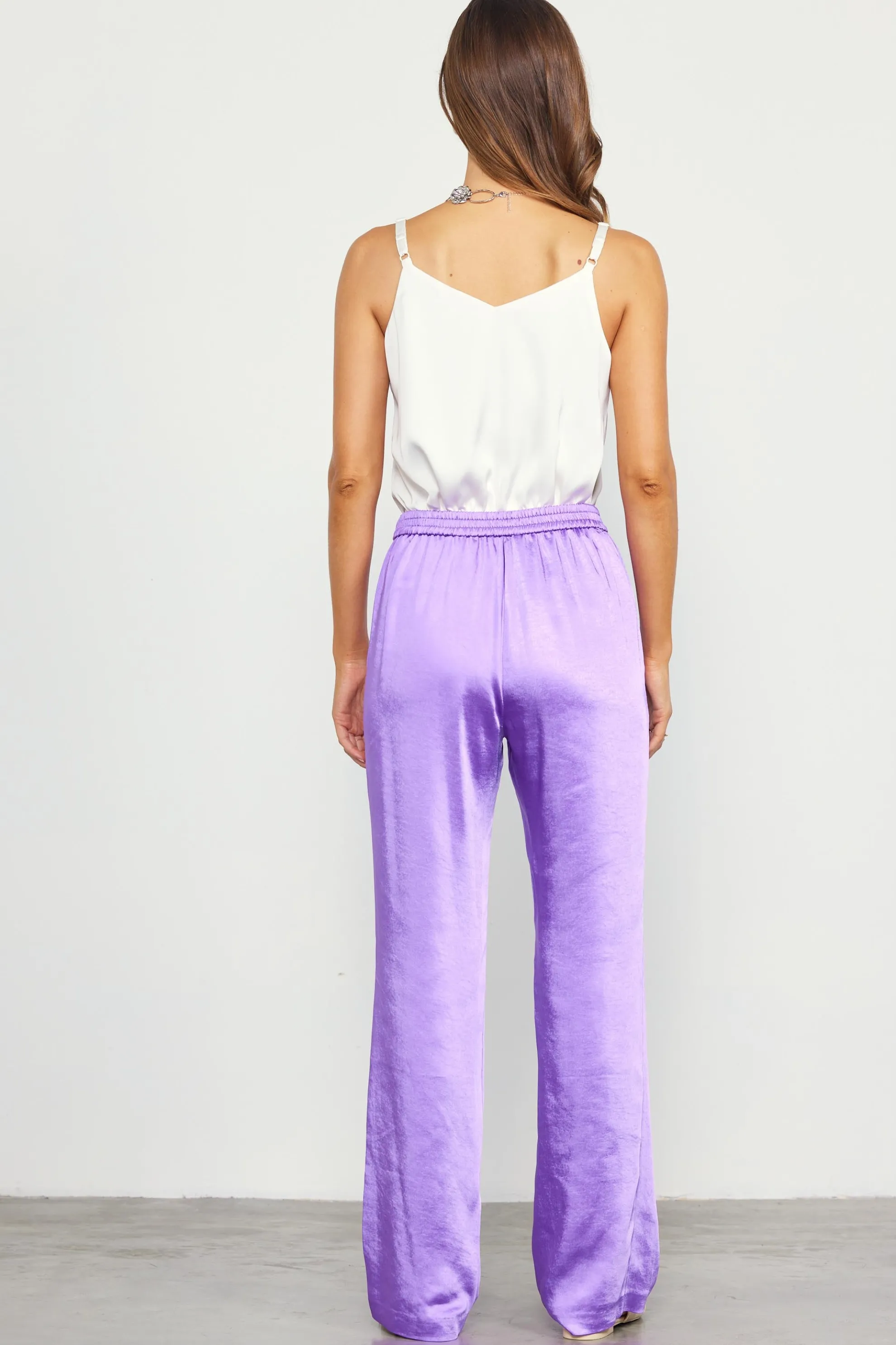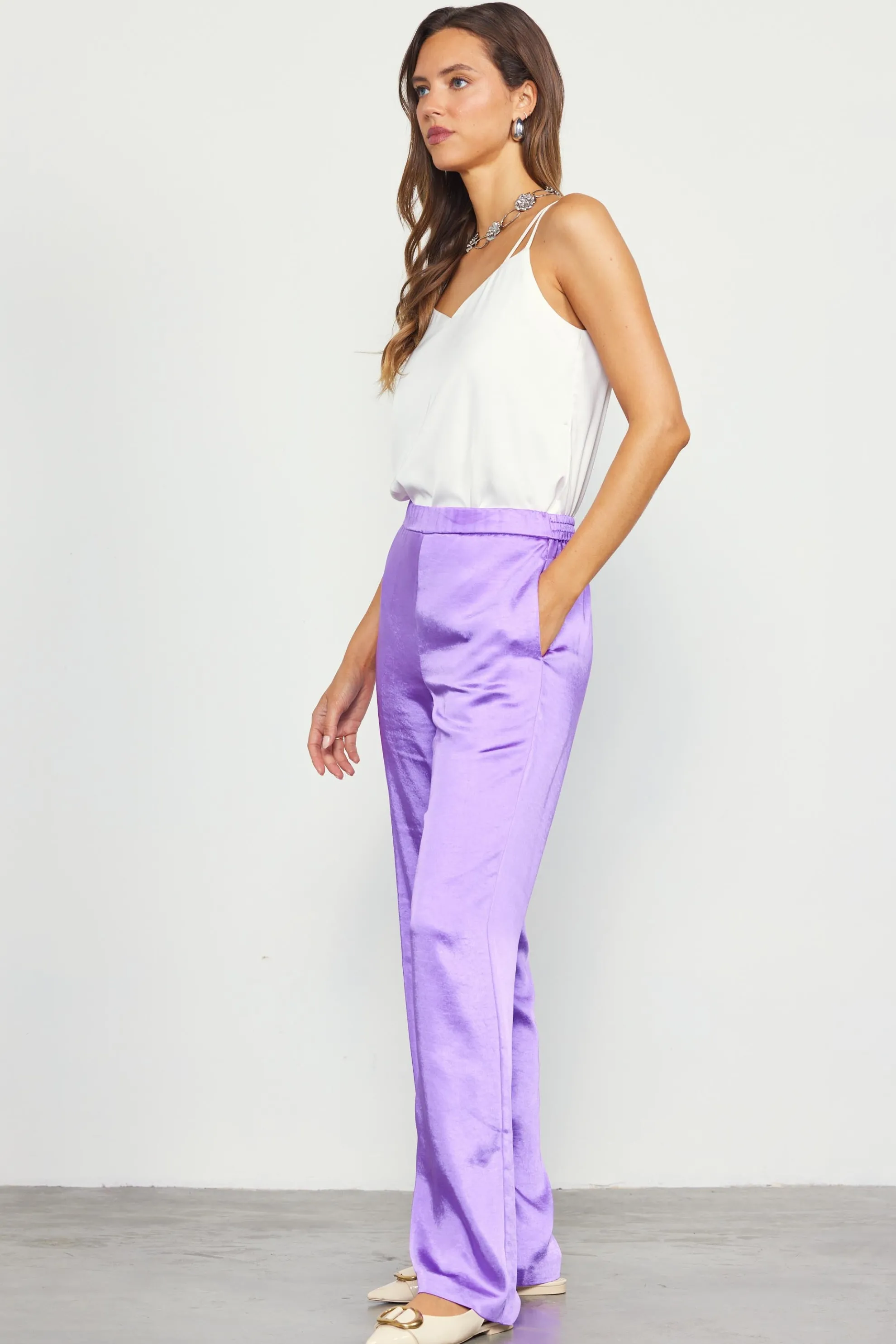 Simple yet sophisticated, these satin pants have a high waist and an easy straight-leg silhouette. The elasticized back waistband makes for an extra-comfortable fit.