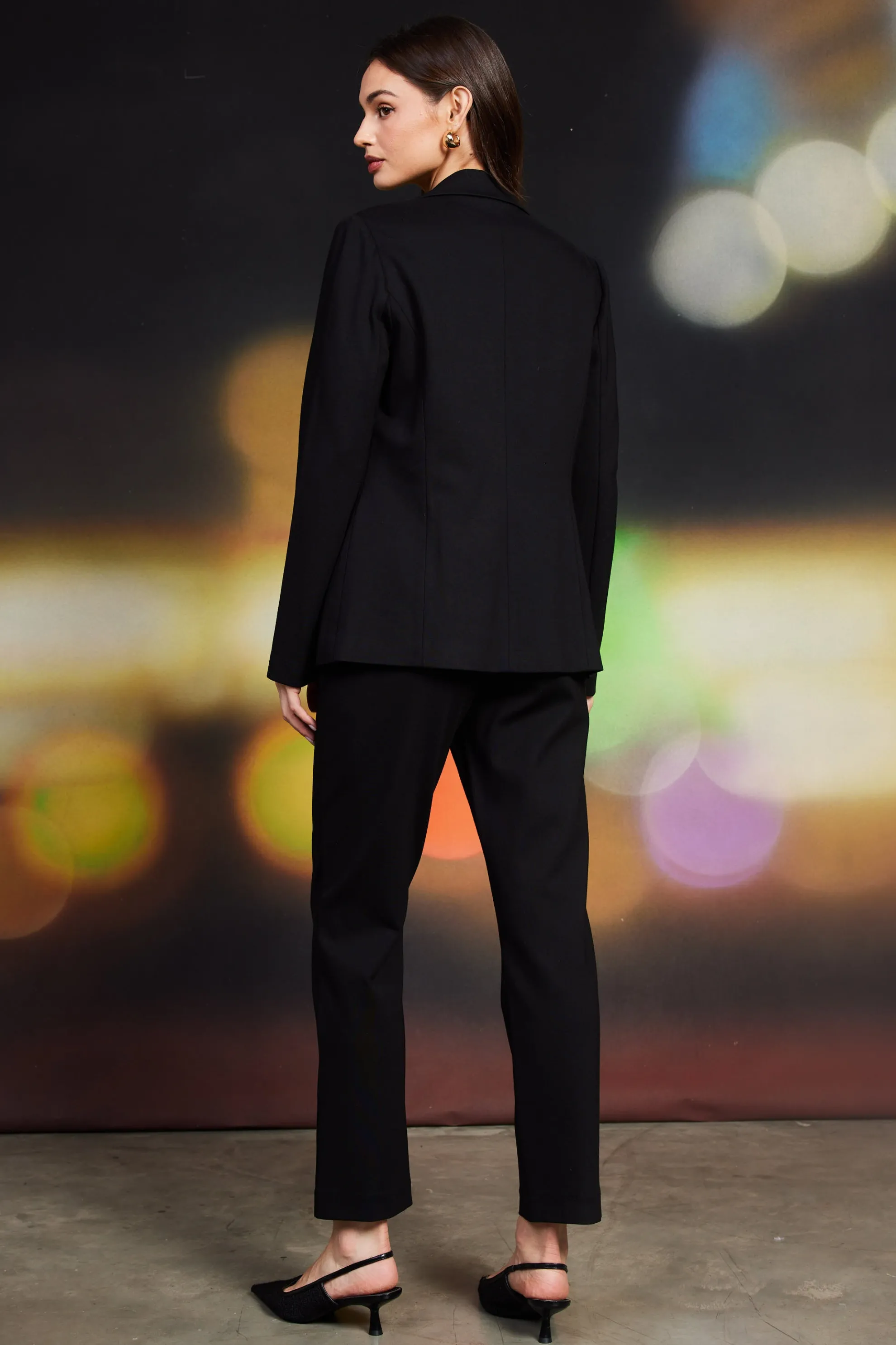 It’s power moves all the way with an open-front blazer in classic black. With notched lapels, long sleeves, and flap pockets, the design is clean and classic, but that color is what makes it stand out.