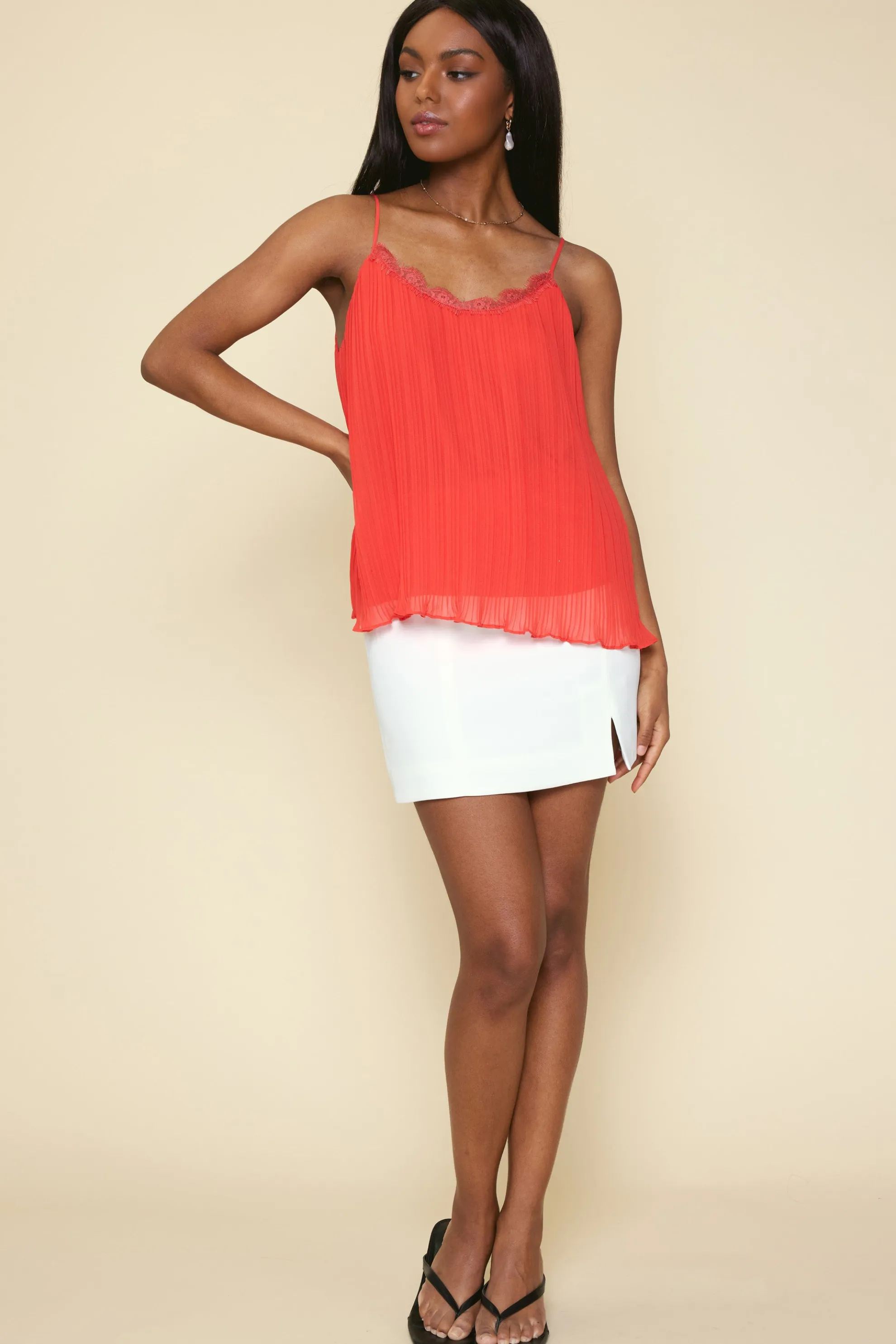 This strappy cami top has a simple silhouette, but the soft pleating and eyelet lace trim add something extra. Wear it solo or as a foundation for layering.