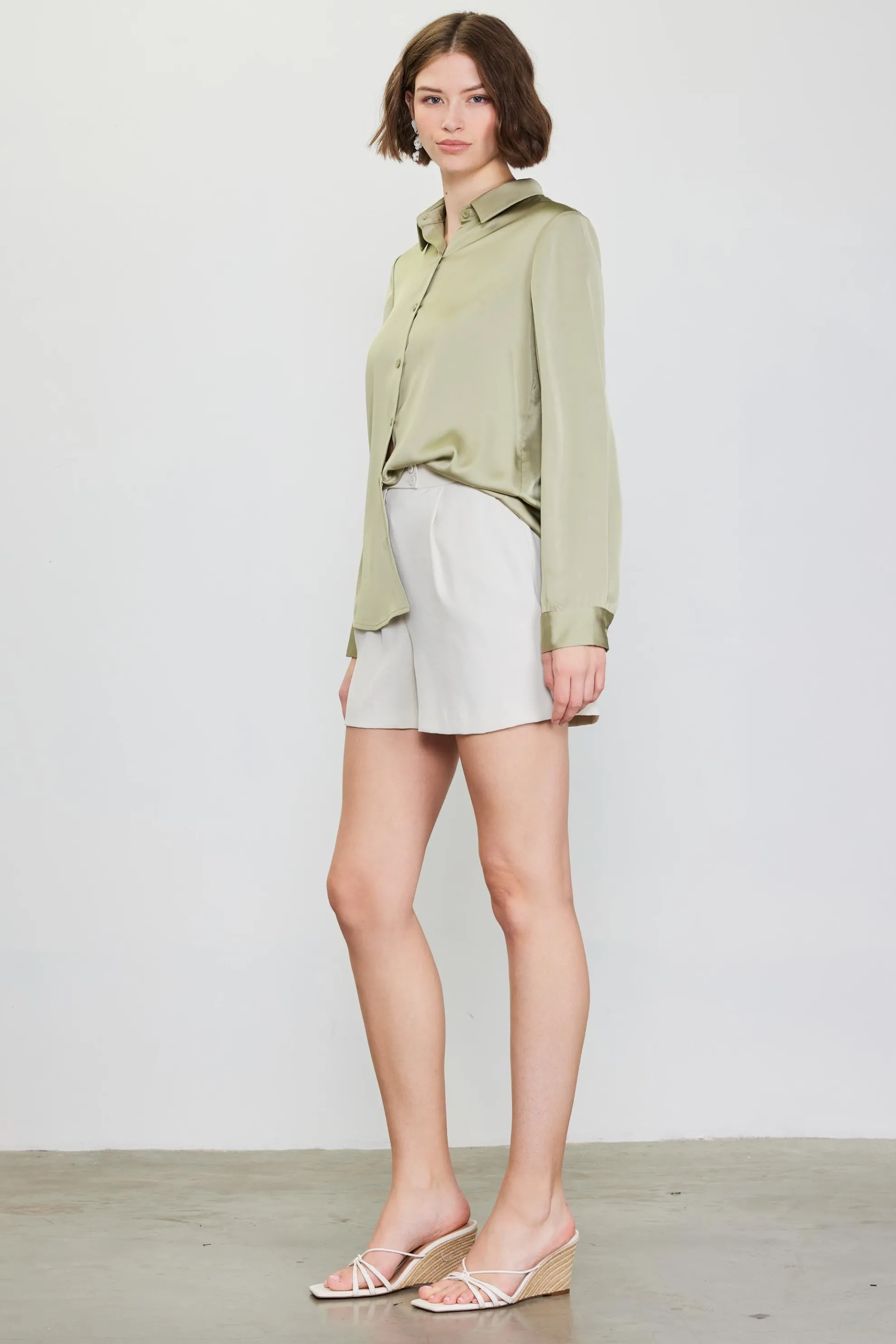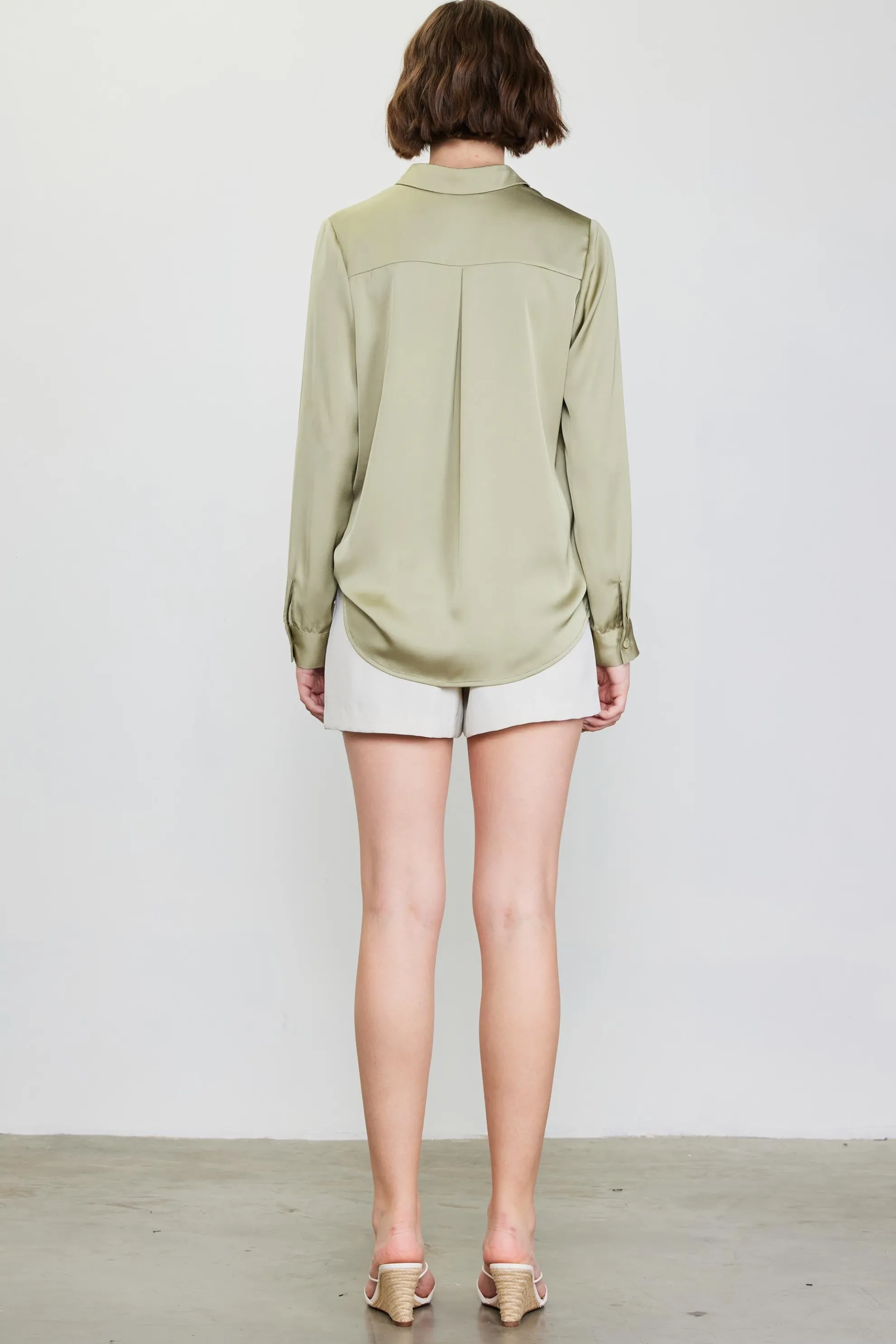 This button-front blouse has a relaxed fit in certified recycled materials. Pleated at the back to enhance the easy drape, the long-sleeve style is a refined piece that you can wear in any season.