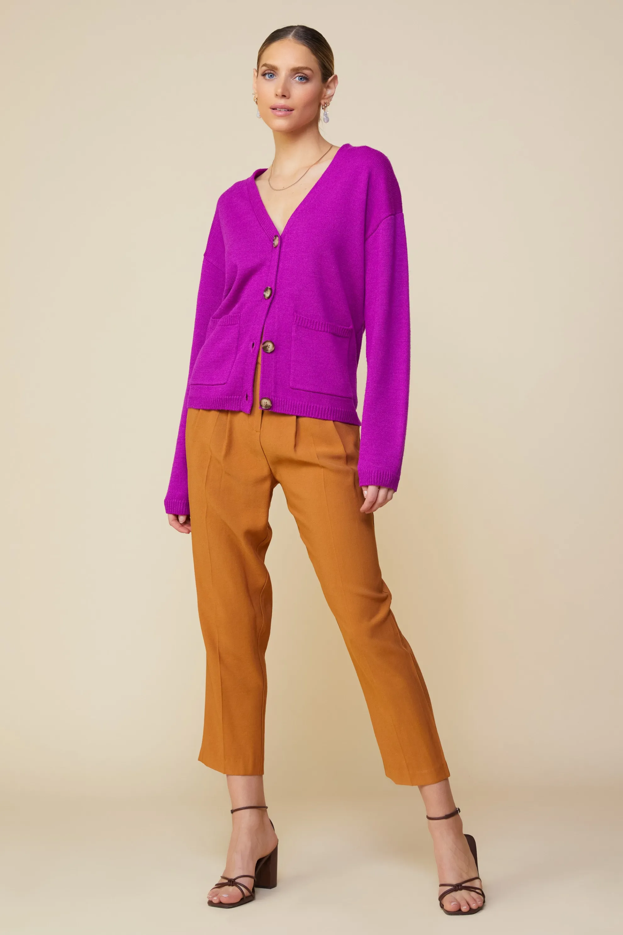 Reach for this cardigan on unseasonably cold days or whenever the AC is blasting. Done in a bold color, it’s made from recycled materials and finished with two pockets at the front.