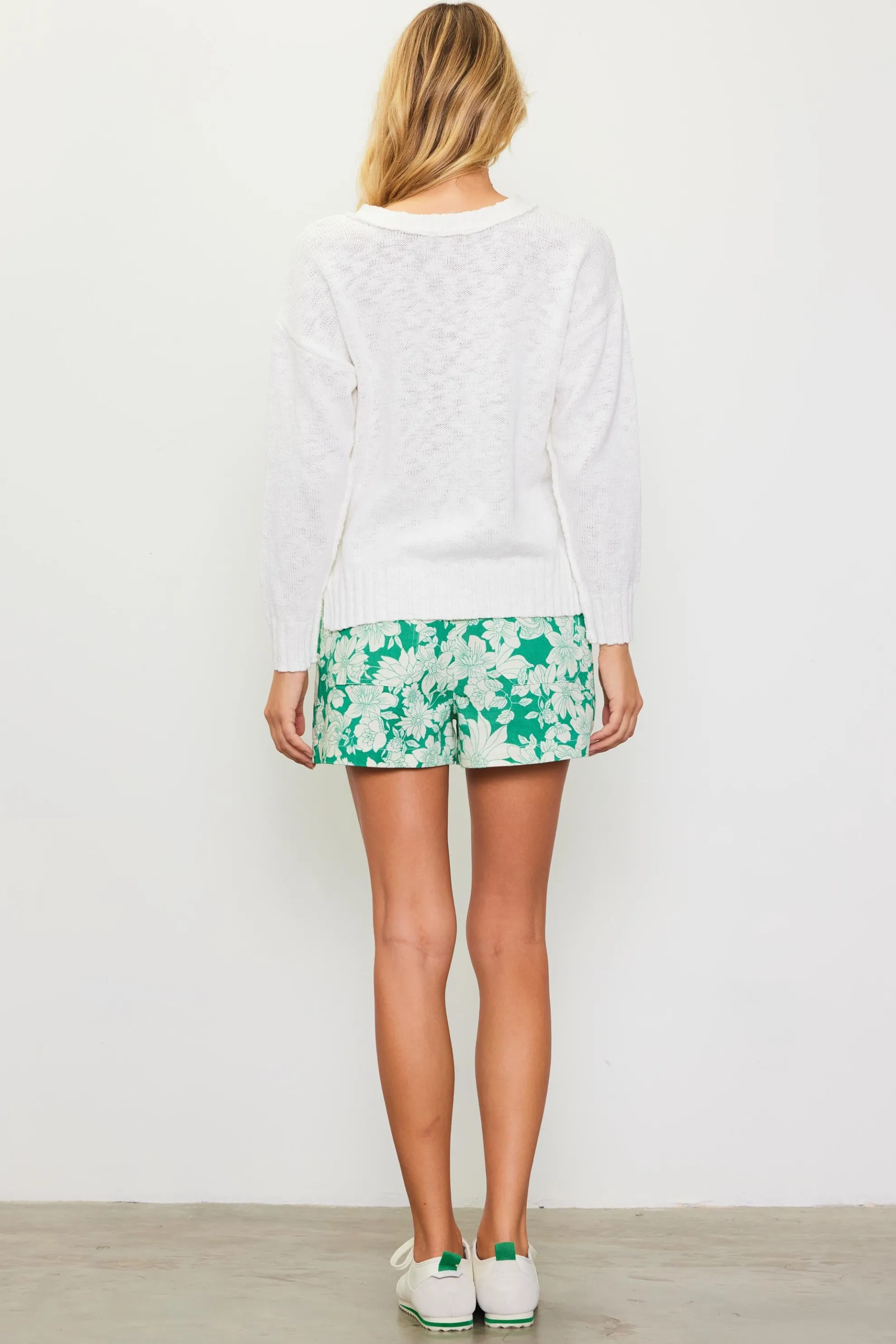 Designed for a slouchy fit, this V-neck sweater has dropped shoulders with exposed seam detailing. Chunky rib stitching at the cuffs and hem complete the cozy design.