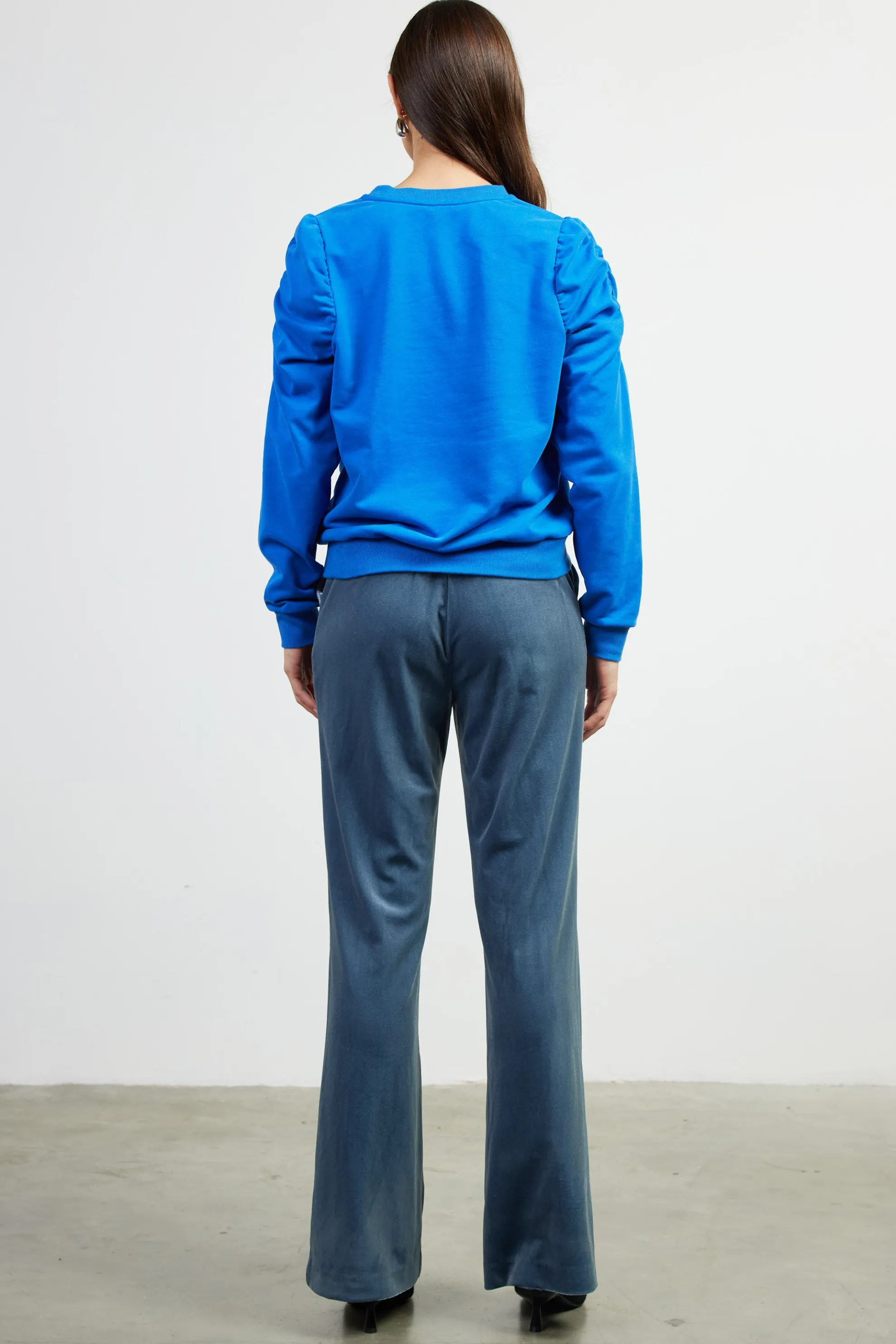 Voluminous ruched sleeves deliver a feminine take on the classic crewneck sweatshirt. Finished with ribbed trim, the style pulls on and wears comfortably.