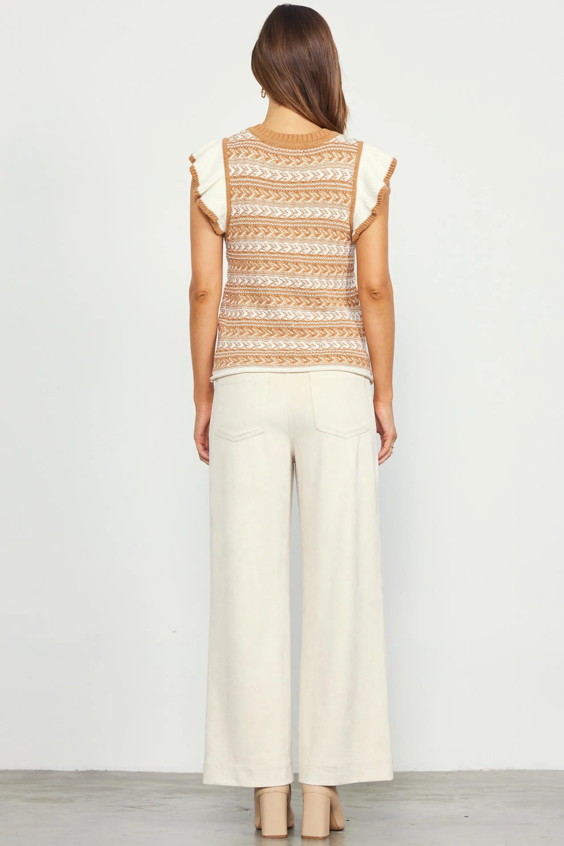 This summer-ready sweater has lots of texture thanks to a mix of stitches throughout. It’s designed with a round neckline and short, ruffled sleeves, plus a rolled hem for a slightly relaxed finish. The perfect knit top for warmer months.
