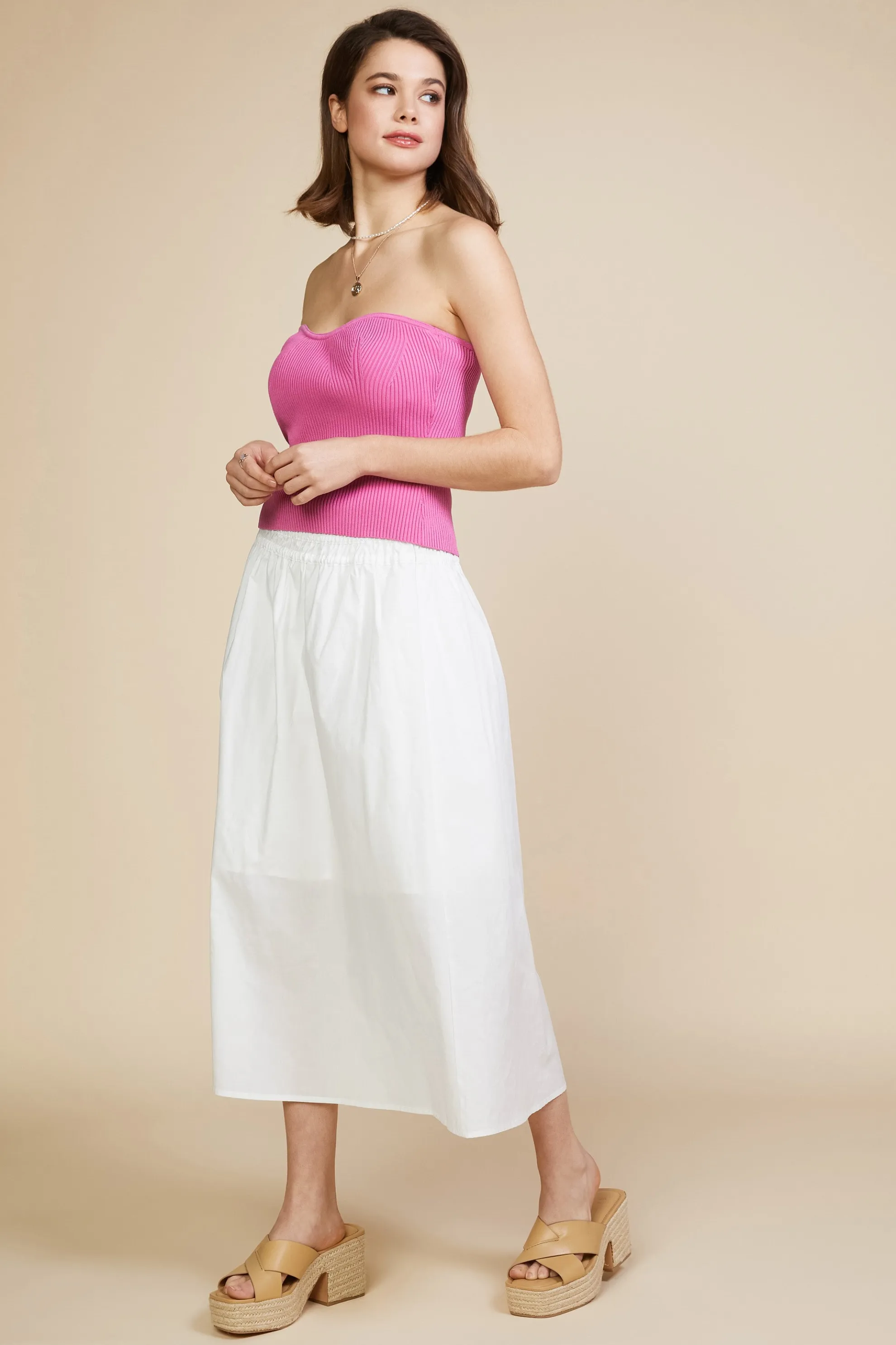 A rib-knit bandeau top with a sweetheart neckline is simple, comfortable, and just the right amount of sexy. Style it with denim for a casual vibe or underneath a blazer for chic sophistication.