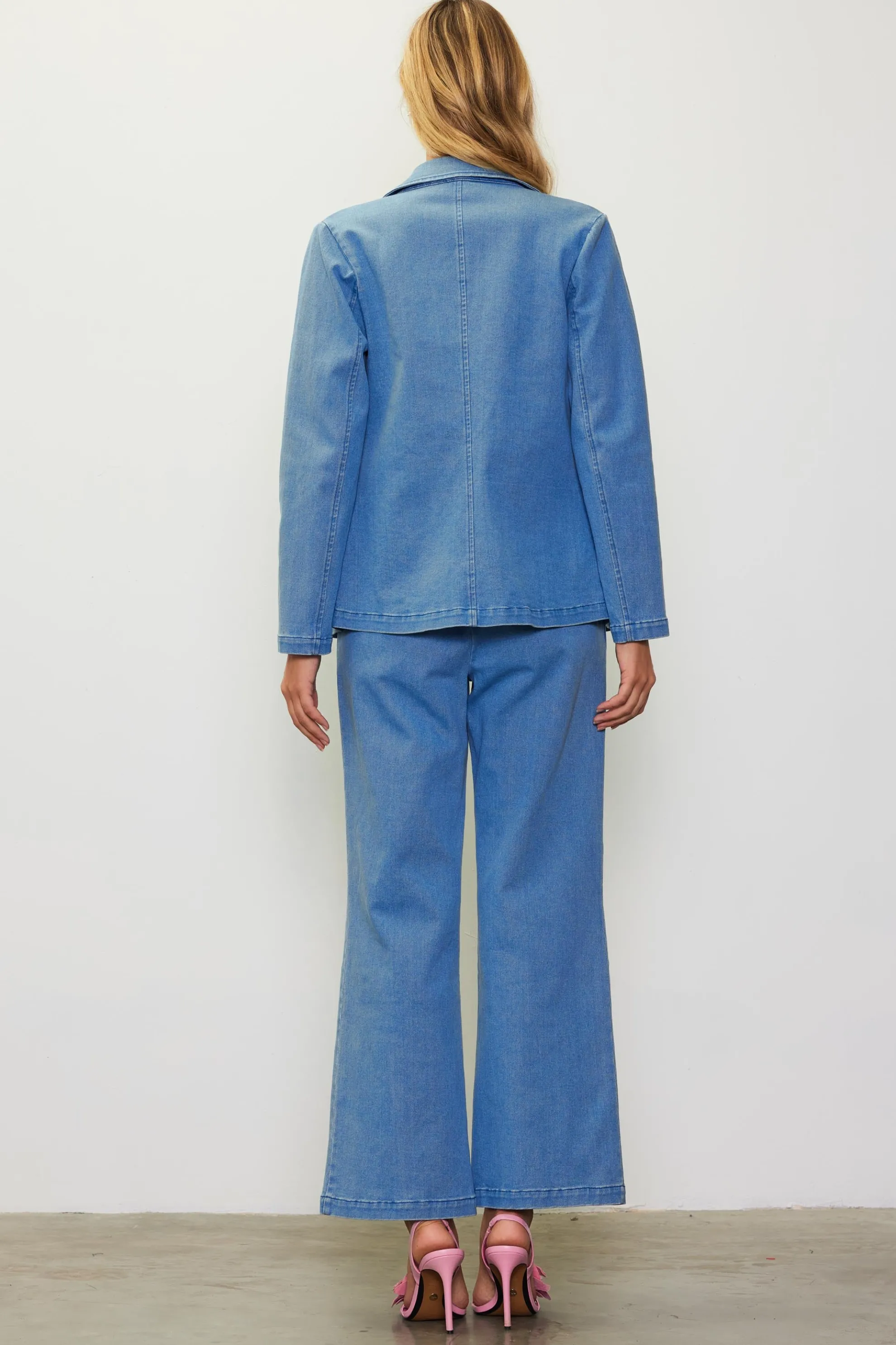 This washed denim blazer takes a casual approach to tailored style. The fit is on the relaxed side, designed with notched lapels, a single covered button, and patch pockets. Throw it on with our matching trousers and make it a set.
